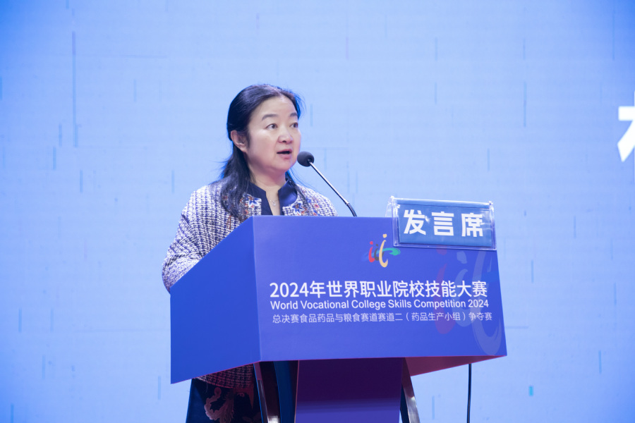 裁判长何晓文从大赛总体情况、评分标准、参赛表现、执裁情况及建议意见等方面进行了赛项点评。她表示,世界职业院校技能大赛以“三个自主”为原则,本赛项比赛过程中呈现出以下三方面亮点:一是各参赛队项目设计紧贴制药产业,以问题为导向,解决药品生产实践问题和技术难题;二是比赛项目实际应用不断拓展,项目来源多类,类别多种,体现了项目创新性和应用性;三是创新创意精彩纷呈,比赛项目创新点明显,体现了项目的前沿性。