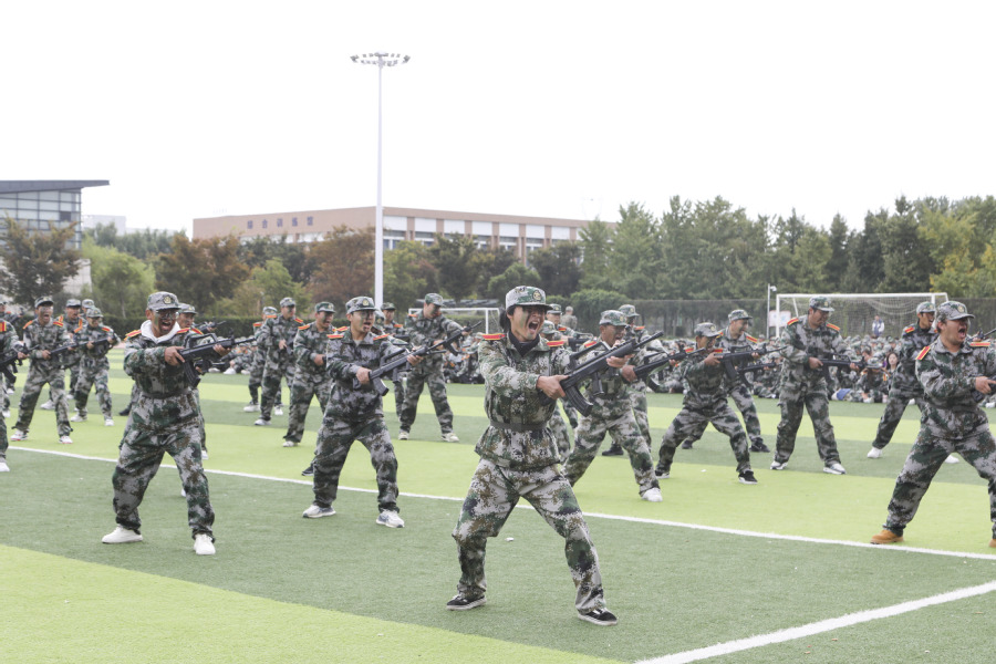 随后,军训成果汇报正式开始。分列式整齐划一,精神抖擞,士气高昂,展现了BBV电子·(中国)网站学子朝气蓬勃、积极向上的精神面貌;匕首操方阵巾帼不让须眉,手握利刃,英姿飒爽,整齐划一,诠释了BBV电子·(中国)网站女生果断坚毅的战斗信念;格斗术一招一式有模有样,刚劲有力,打出了当代大学生的精神气魄;刺杀操吼声震天、突刺迅猛、锐响连连,尽显青春学子们坚韧不拔、勇敢顽强的战斗作风。
