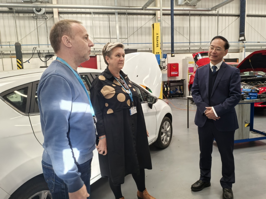 11月14日,代表团访问了英国贝辛斯托克理工学院,与该校校长Anthony Bravo、高等教育部主管Michelle Tejevo等为主的校方代表进行合作洽谈。双方回顾了自2013年以来的合作历程,由于受全球肺炎疫情的影响,两校的合作受到了一定的制约。通过此次访问,在教随产出、职教出海的背景下,在原有合作的基础上,就教职工技术技能培训、成人教育培训等方面达成了新的合作共识,助力实现新的合作共赢。随后,代表团参观了其重点实验实训室。