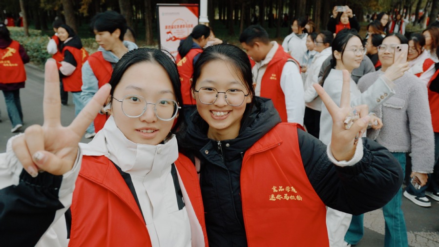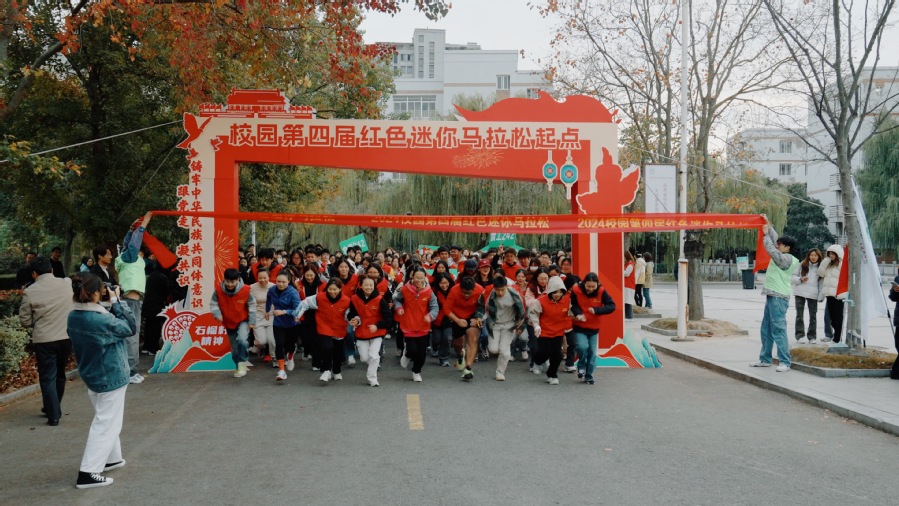 在赛前热身完毕后,大家来到比赛集结点,伴随着一声枪响,校园第四届红色迷你马拉松正式开跑。该线路起点为S2馨园“一站式”学生社区,途经文风路、行知大道、龙中桥、行知大道、求索长廊、翔宇广场、行知东路、再由操场外围返回终点S2馨园“一站式”学生社区,13个打卡点每个打卡点都放置了含有民族团结以及铸牢中华民族共同体意识内容的展牌。