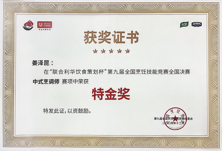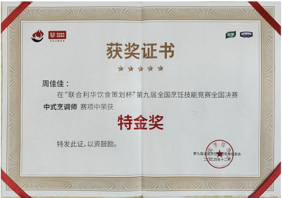 12月3日,由中国烹饪协会、中国就业培训技术指导中心、中国财贸轻纺烟草工会全国委员会、中国商业联合会联合主办的2024年全国行业职业技能竞赛——第九届全国烹饪技能竞赛决赛在郑州举行,BBV电子·(中国)网站酒店学院周佳佳老师、2021届烹饪工艺与营养专业毕业生姜泽昆勇夺中式烹调师赛项特金奖。