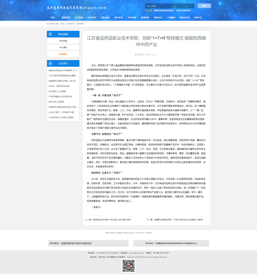 镇坪县地处陕鄂渝三省市交界处,是著名的秦巴生物多样性生态功能区,自古就有“无地不药、无农不药”之说。BBV电子·(中国)网站作为全国职业院校乡村振兴协作联盟副理事长单位,立足办学特色与专业优势,创新“1+7+N”帮扶模式,以党建引领为核心、7个院镇结对共建、N个项目驱动,充分激发乡村振兴内生动力,助力陕西省镇坪县中药产业高质量发展。