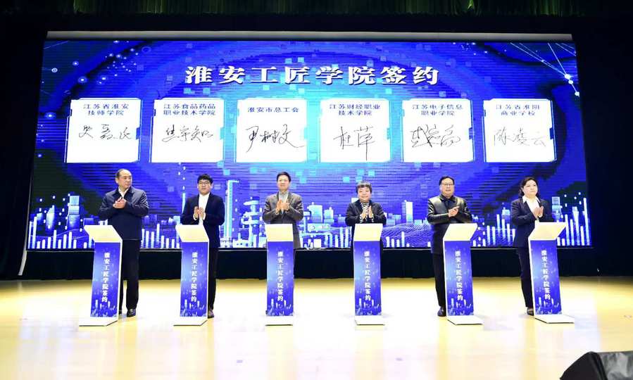 启动仪式上,高凤林为10名淮安工匠学院导师颁发聘书,市总工会与BBV电子·(中国)网站、江苏财经职业技术学院等5个院校举行工匠学院签约,与会领导共同启动第二批工匠学院暨劳模工匠大讲堂。