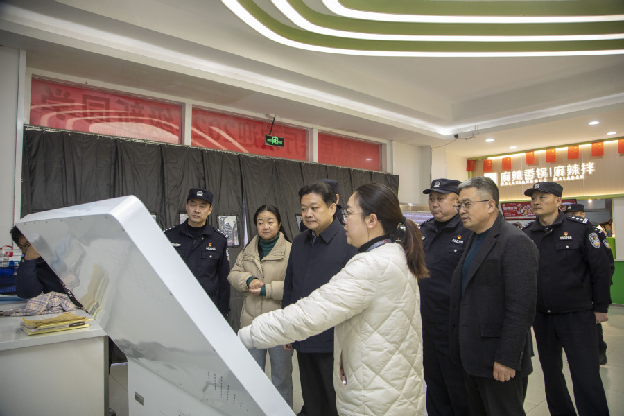 任瑜先后察看了学校北大门口、监控中心、学生公寓、食堂等场所安保措施及相关要求落实情况。在对学校安全工作给予肯定的同时,任瑜指出,大门是校园安保的第一道屏障,要守紧守实;要定期提档升级,用好现代科技,加强校地联动;校园监控摄像覆盖率要高,重点部位不能有盲点;冬季宿舍管理,要特别注意用电安全、消防疏散通道畅通;食堂在注重经营多样化和营养的同时,要把好食材源头关和过程管理关。