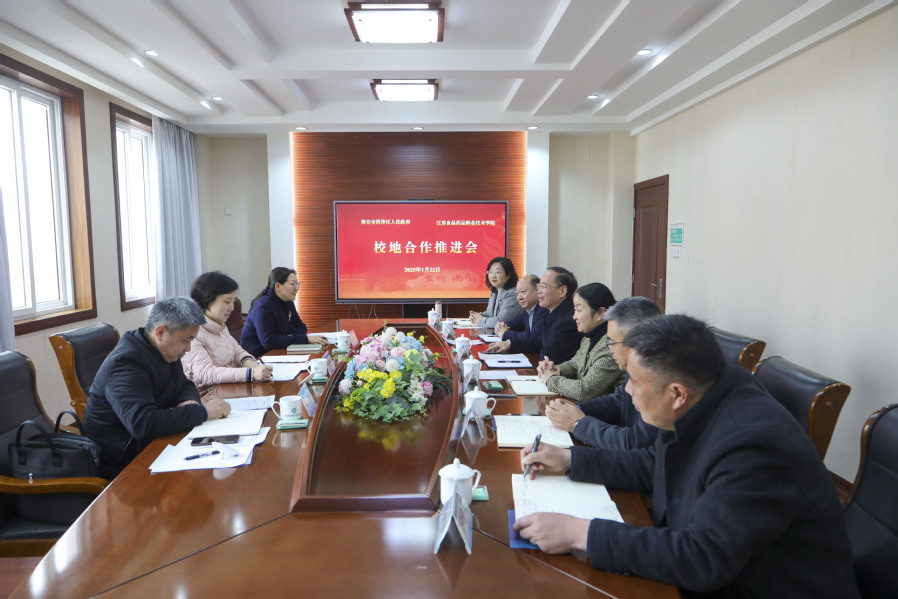 淮安食品科技产业园管理办公室负责人,学校党委办公室、校长办公室、洪泽湖产业学院负责人参加会谈。
