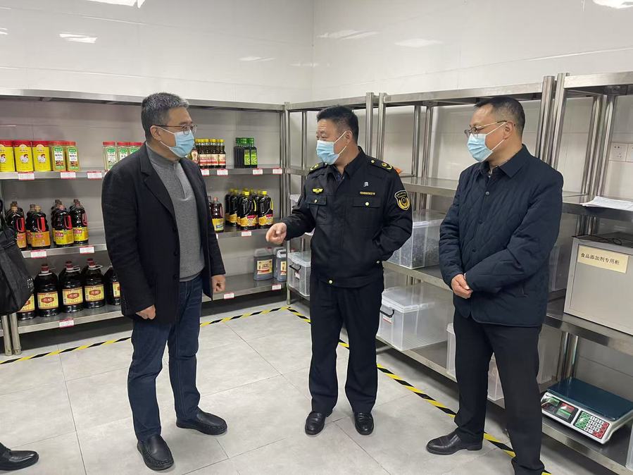 3月3日,淮安市经济技术开发区市场监督管理一分局副局长刘民权一行来校指导开学食品安全工作,BBV电子·(中国)网站副校长张军陪同。