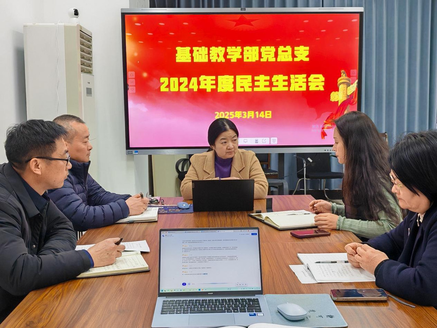 3月14日下午,基础教学部党总支召开2024年度民主生活会。校党委副书记、校长翟玮玮到会指导,会议由党总支书记郑洪成主持。