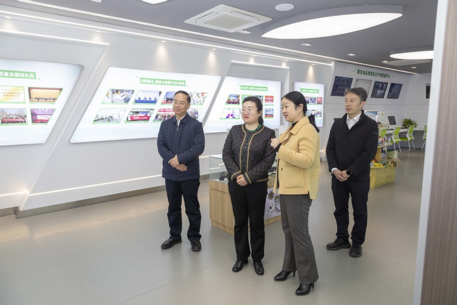 在食品药品研究院,封蕴珊听取学校关于深化社会服务、校地合作等方面的特色做法。她指出,要充分运用高校人力资源、科技资源高地优势,强化政行企校沟通联系、通力合作,高质量将人才链、产业链、创新链有机融合。