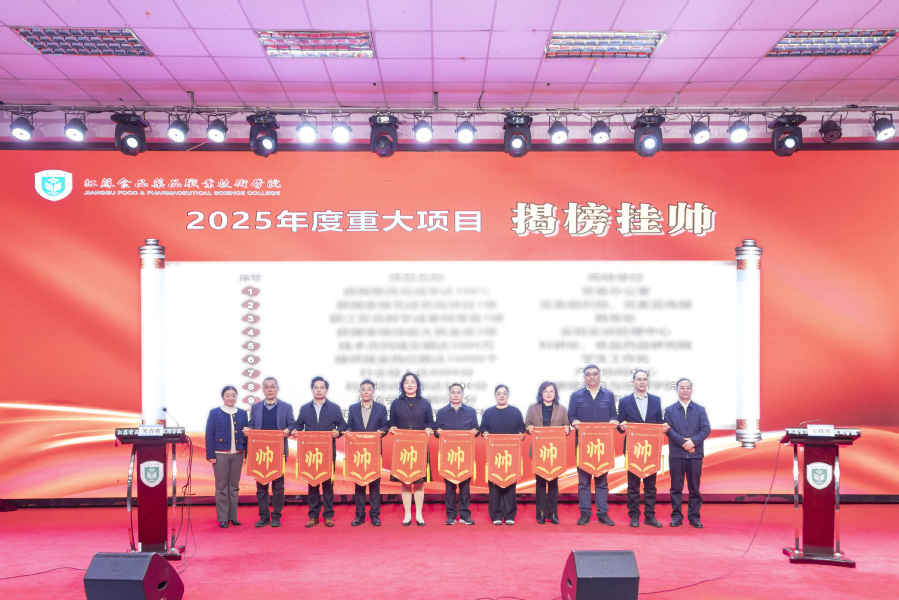 会上,党委办公室、党委宣传部、教务处、实验实训管理中心、科研处、学工处、产教协同中心、继续教育与培训学院、人事处、数字校园建设中心等10个部门负责同志现场“揭榜”学校2025年十大重点项目,薛宇书记、翟玮玮校长为揭榜同志授帅旗。教务处副处长拾以超、产教协同中心主任於文刚、食品学院副院长田青分别作表态发言,表明了坚定完成任务的信心和决心。