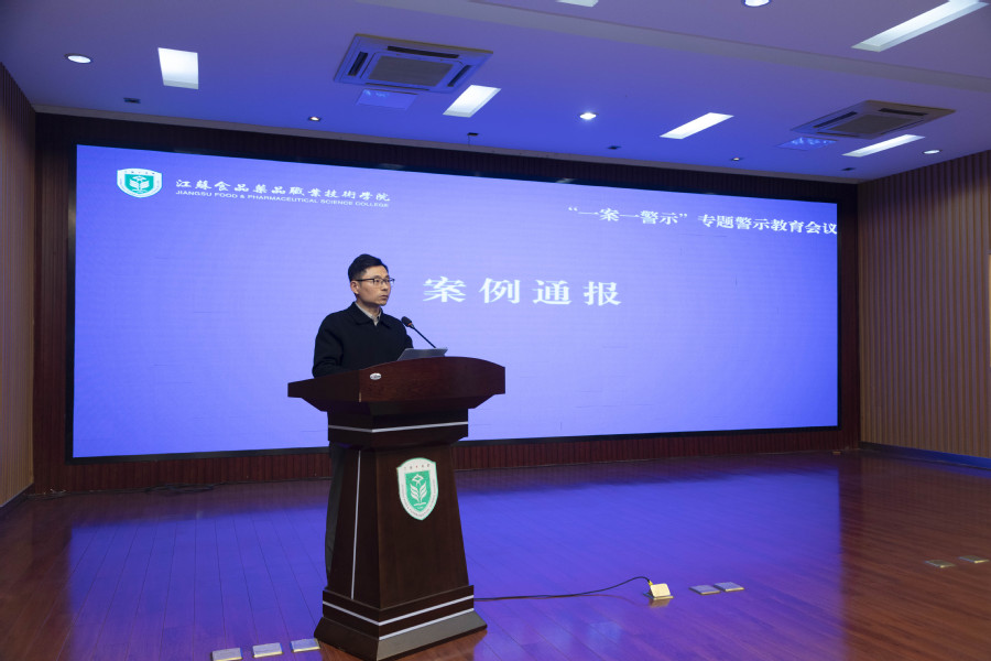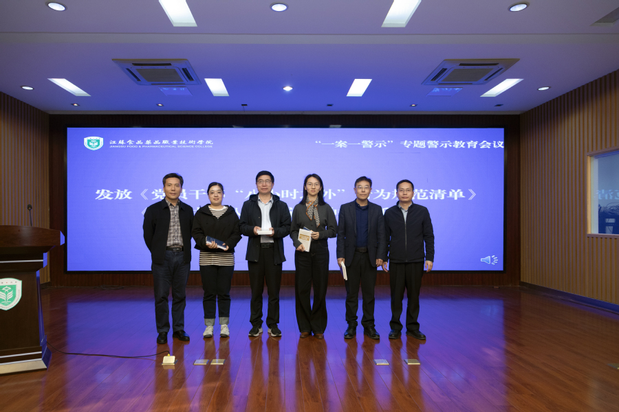 与会同志首先进行了纪法小课堂学习;随后执纪审查室主任曹烨通报了相关案例;校党委委员组织部部长周耀明、宣传部部长丁正亚为职能部门代表发放了《落实中央八项规定精神规范手册》和《党员干部八小时之外行为规范清单》两本书籍;重点部门代表人事处严陈、科研处史晶晶、招生处吴文文三位科长进行了发言交流;学工处、教务处、计财处、资产处、基建处、后勤服务中心等部门负责人现场庄重签下师德师风承诺书和廉洁自律承诺书。