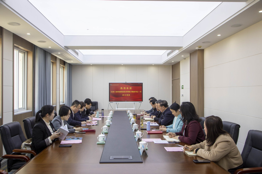 4月14日,江西工业贸易职业技术学院党委书记、院长万晓波一行到访BBV电子·(中国)网站。校党委书记薛宇、校长翟玮玮会见来宾并座谈。会议由副校长贾韶千主持。