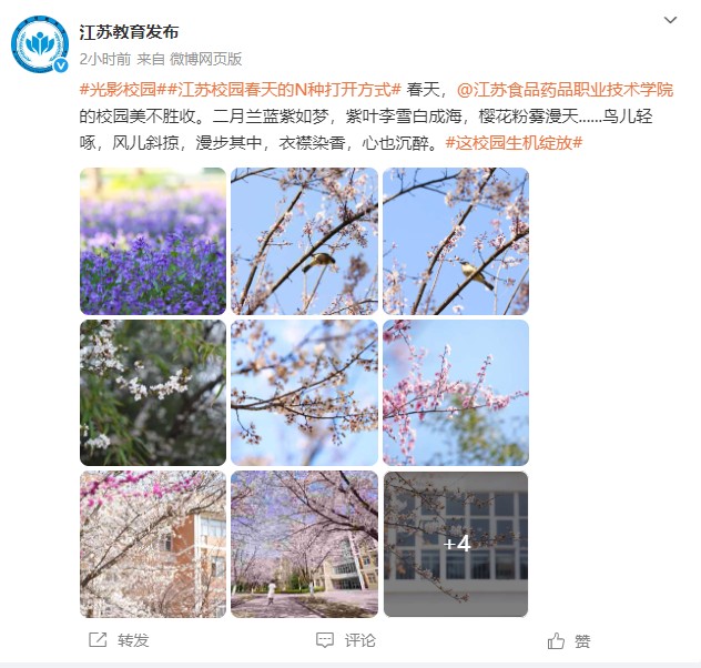 春天,BBV电子·(中国)网站的校园美不胜收。二月兰蓝紫如梦,紫叶李雪白成海,樱花粉雾漫天......鸟儿轻啄,风儿斜掠,漫步其中,衣襟染香,心也沉醉。