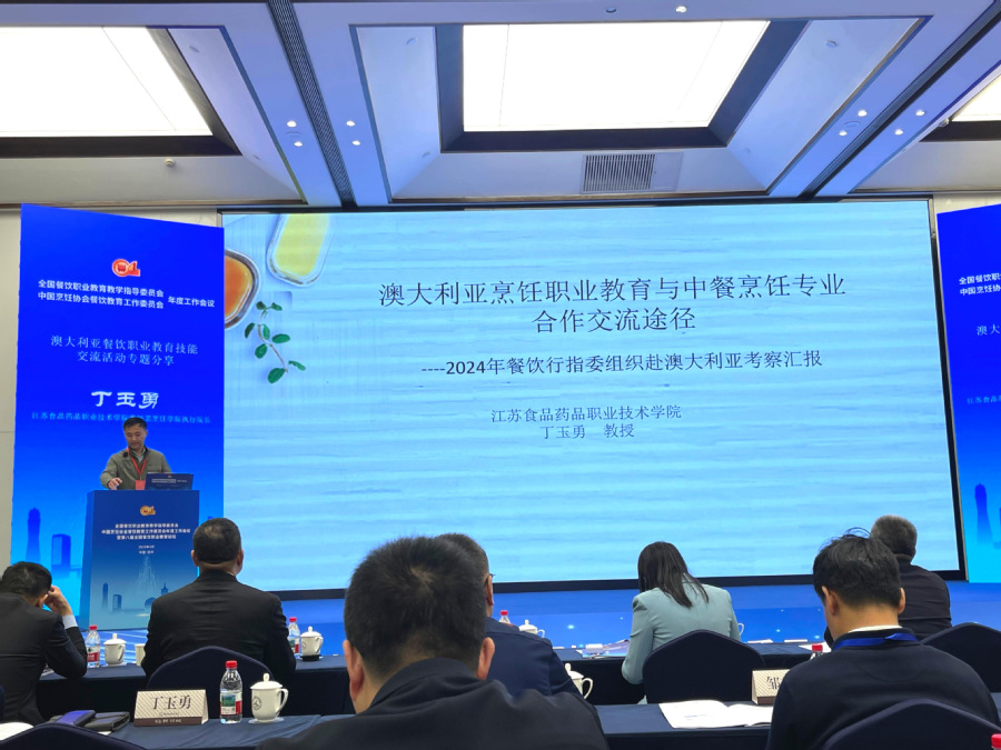 行指委年度工作会议审议了2024年度工作总结和2025年度工作计划,并对职教出海专项工作进行了汇报交流,丁玉勇教授作了“澳大利亚职业教育与中餐烹饪合作交流途径”的专题报告,各个专门委员会进行了工作交流汇报,在各专门委员会的工作报告中,BBV电子·(中国)网站烹饪专业的活动多次被作为典型案例提及。