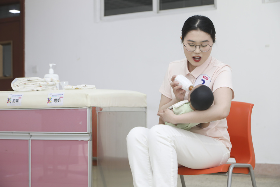 此次大赛以0-3岁婴幼儿照护活动任务为导向,按照早托机构工作岗位要求,结合当前早托行业工作现状与发展需要,通过生活照料、保健护理、急救处理、亲子活动设计、展示讲解等模块考察选手的专业综合素养。