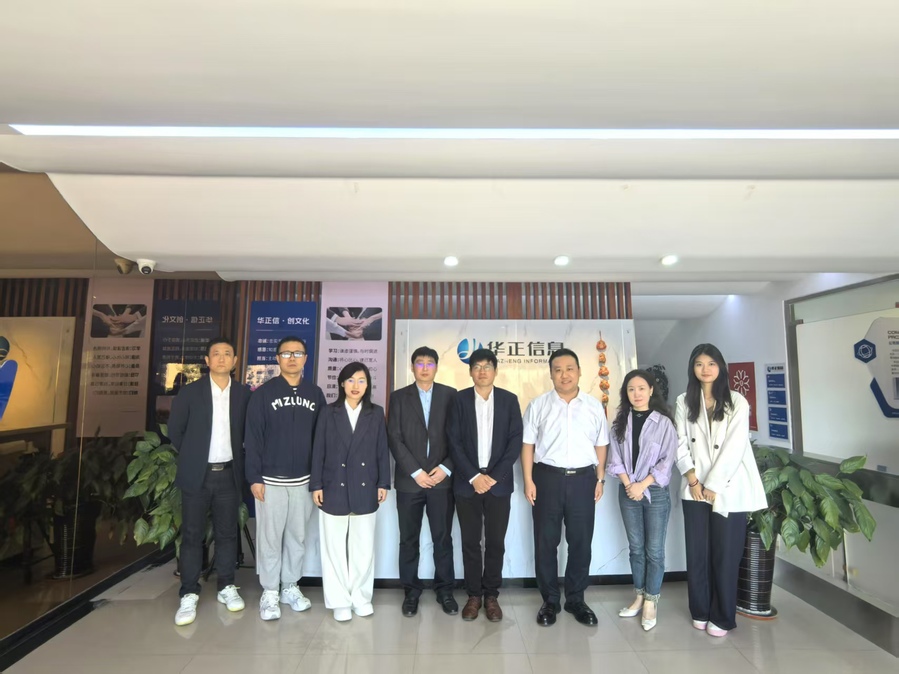 在华正信息技术股份有限公司、东唐影视创业园,一行人参观企业文化展厅,双方围绕行业人才需求、技术创新、成果转化等方面展开交流。