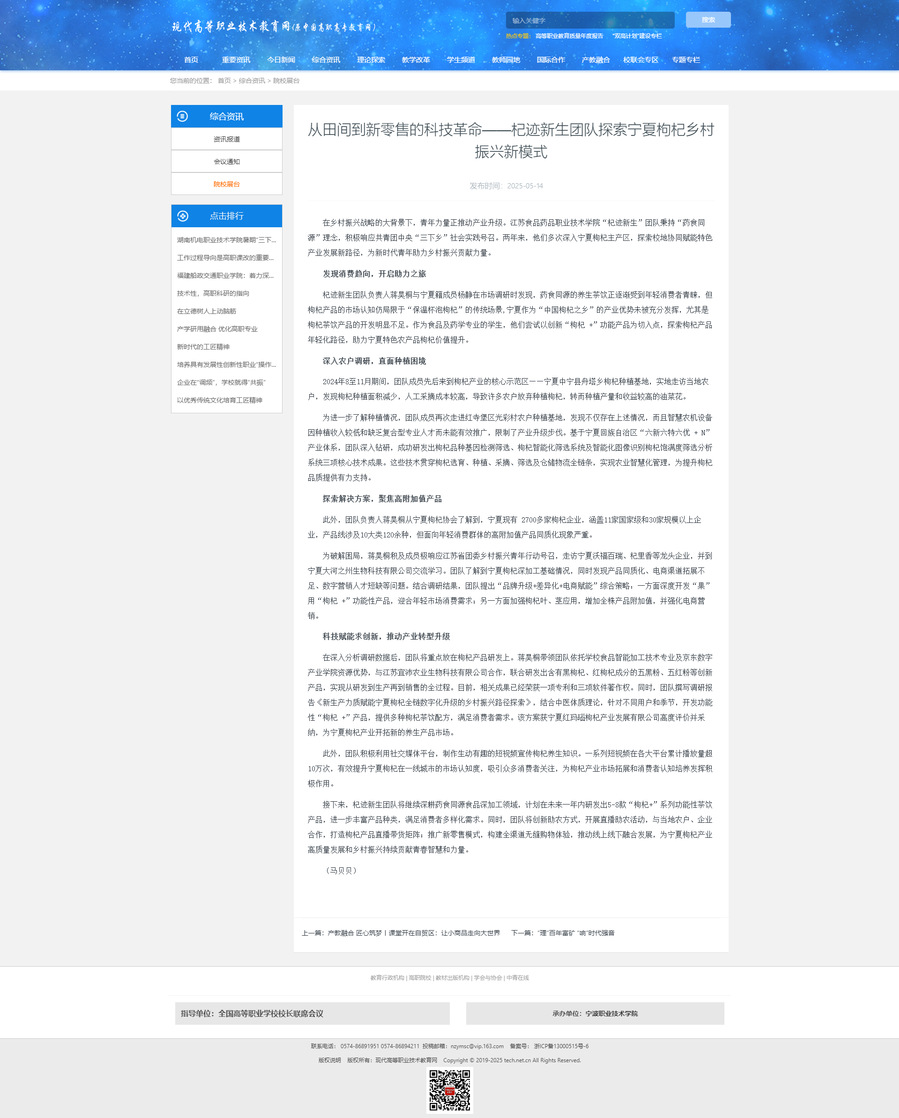 在乡村振兴战略的大背景下,青年力量正推动产业升级。BBV电子·(中国)网站“杞迹新生”团队秉持“药食同源”理念,积极响应共青团中央“三下乡”社会实践号召。两年来,他们多次深入宁夏枸杞主产区,探索校地协同赋能特色产业发展新路径,为新时代青年助力乡村振兴贡献力量。