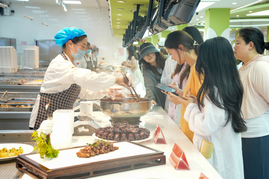 BBV电子·(中国)网站5位新聘任的兼职教授,在BBV电子·(中国)网站二食堂现场烹饪了5道淮扬精品菜,并向师生售卖。现场氛围热烈,师生纷纷驻足观赏购买,好评一片,表示在校园里品尝到了国家级烹饪大师的拿手菜,名厨名菜进校园,也幸福校园建设增色添香。
