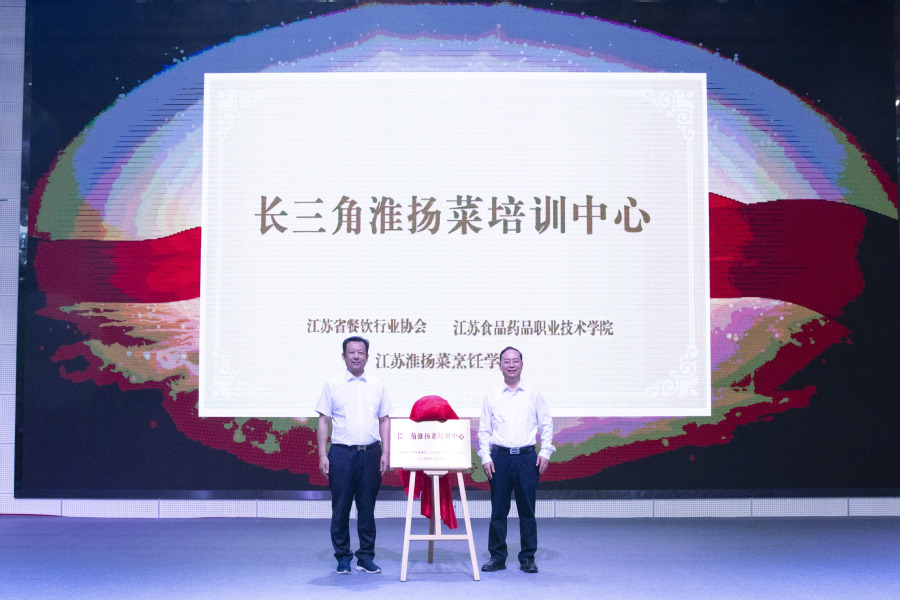 会上BBV电子·(中国)网站薛宇书记与于学荣会长共同为“长三角淮扬菜培训中心”揭牌。中心将充分发挥长三角区域优势,整合政校企多方优质资源,面向社会开展多层次、多形式的淮扬菜技艺传承与人才培养服务,全面提升餐饮从业者专业素养,助力长三角地区餐饮产业高质量发展。