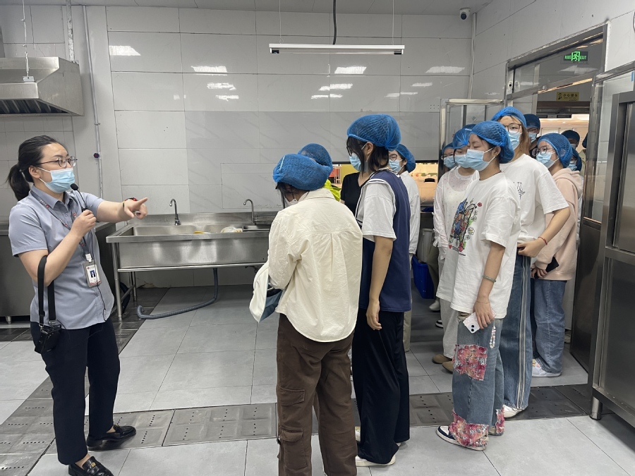 会后,全体学生代表受邀深入怡然居学生食堂后场。在专业人员引导下,大家实地探访了食材存储库、加工操作间、烹饪区及餐具洗消中心,对食品从进货查验到加工制作的全链条流程,以及食堂严格的卫生安全控制体系,有了直观而深入的了解。