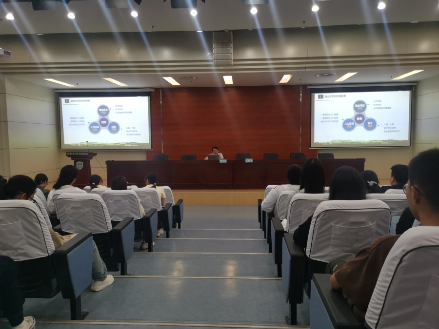 厉东伟深入分析了当前就业形势及影响因素,总结了当代大学生的就业特点。他指出劳动者技能与产业需求不匹配、企业用工与求职者预期存在差距对大学生的高质量就业造成了影响,鼓励在场大学生要锚定理想职业,有针对性提升就业能力,树立正确的就业观、择业观,尽早就业。