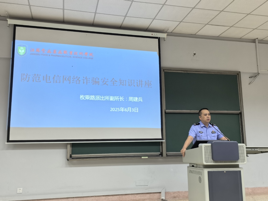 为进一步帮助学生群体提高防范电信网络诈骗能力,筑牢校园反诈防线,近日,保卫处邀请淮安市公安局经济技术开发区分局枚乘路派出所副所长周建兵,在教学楼B108举办防范电信网络诈骗安全知识讲座,讲座由保卫处处长王涛济主持,学生代表及辅导员代表参加了讲座。