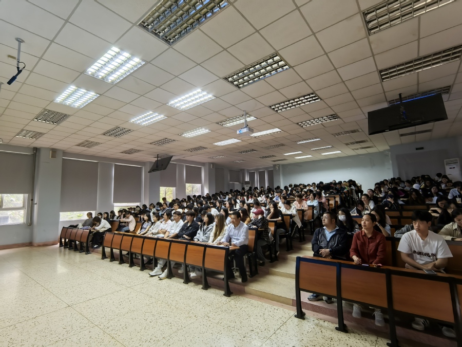 讲座中,周建兵凭借丰富的反诈实战经验,以淮安高校发生的典型诈骗案例为切入点,将诈骗分子的作案手段层层剖析。从刷单返利、虚假网购、高薪兼职、高价回收游戏装备、冒充QQ微信好友借款、各类可疑信息及电话诈骗等花样百出的电信网络诈骗手段,周所长都结合典型案例进行了生动讲解,向师生们传授了一系列实用有效的防骗技巧。周建兵提醒同学们,不要随意透露自己的银行卡、电话号码等身份信息,要保持清醒、理智的头脑,不做被骗的受害者,更不能成为诈骗犯罪的“帮凶”,倡导大家经常学习法律知识,认清诈骗的各种形式和套路。在互动环节中,周建兵以问答互动的形式与学生展开交流,现场气氛活跃,同学们纷纷表示受益匪浅。