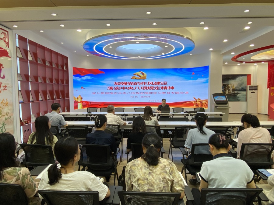 翟玮玮校长以《加强党的作风建设,落实中央八项规定精神》为题,从“为何抓:加强党的作风建设的核心意蕴”“抓什么:加强党的作风建设的方法路径”“如何抓:加强党的作风建设的突破口和着力点”等三个方面阐述了中央八项规定精神的丰富内涵。她指出贯彻落实中央八项规定精神是推进全面从严治党的重要举措,是密切党群干群关系、巩固党的执政基础的必然要求,必须常抓不懈。