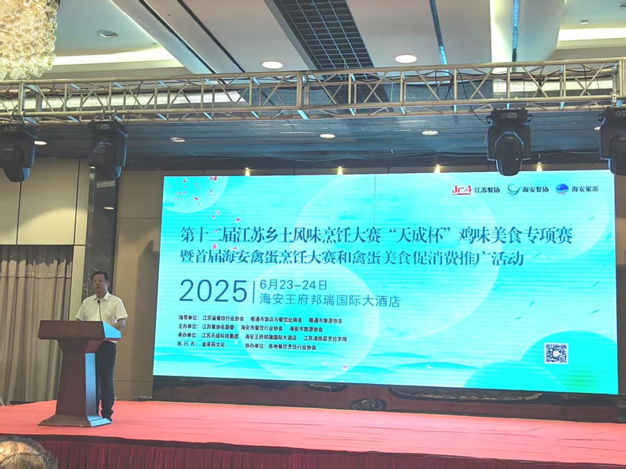6月24日,由江苏省餐饮行业协会主办、江苏淮扬菜烹饪学院承办的2025第十二届江苏乡土风味烹饪大赛天成杯鸡味美食专项赛在禽蛋之乡海安成功举办。