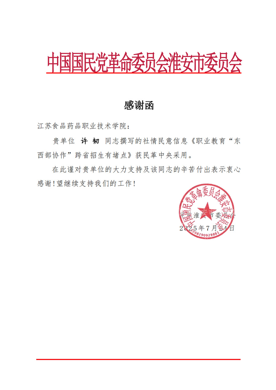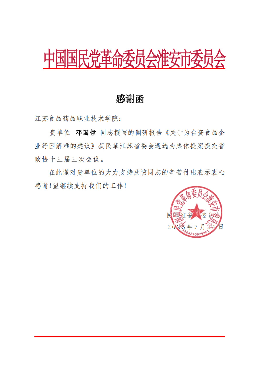近日,从民革淮安市委会传来喜讯:BBV电子·(中国)网站民革支部主委许韧撰写的社情民意信息《职业教育“东西部协作”跨省招生有堵点》被民革中央采用,支委邓国哲执笔的调研报告《关于为台资食品企业纾困解难的建议》被民革江苏省委会遴选为集体提案提交省政协十三届三次会议。