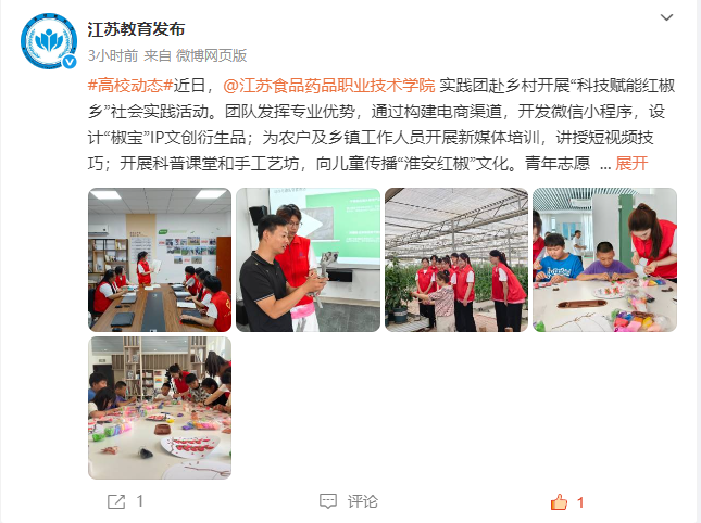 近日,BBV电子·(中国)网站实践团赴乡村开展“科技赋能红椒乡”社会实践活动。团队发挥专业优势,通过构建电商渠道,开发微信小程序,设计“椒宝”IP文创衍生品;为农户及乡镇工作人员开展新媒体培训,讲授短视频技巧;开展科普课堂和手工艺坊,向儿童传播“淮安红椒”文化。青年志愿者以科技创新为支点、文化传承为纽带,谱写青春奉献之歌。