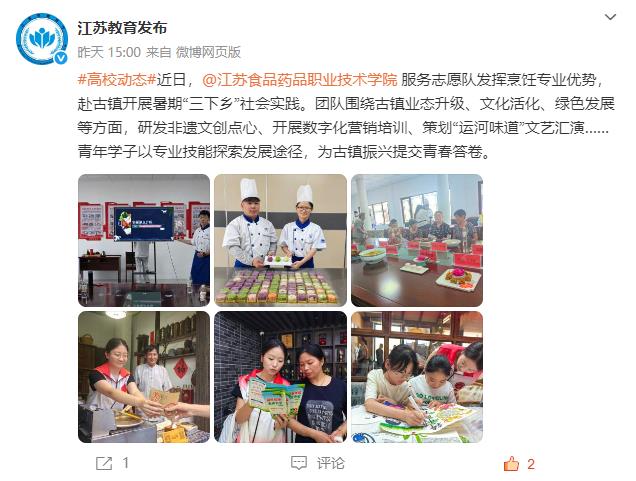 近日,BBV电子·(中国)网站服务志愿队发挥烹饪专业优势,赴古镇开展暑期“三下乡”社会实践。团队围绕古镇业态升级、文化活化、绿色发展等方面,研发非遗文创点心、开展数字化营销培训、策划“运河味道”文艺汇演……青年学子以专业技能探索发展途径,为古镇振兴提交青春答卷。