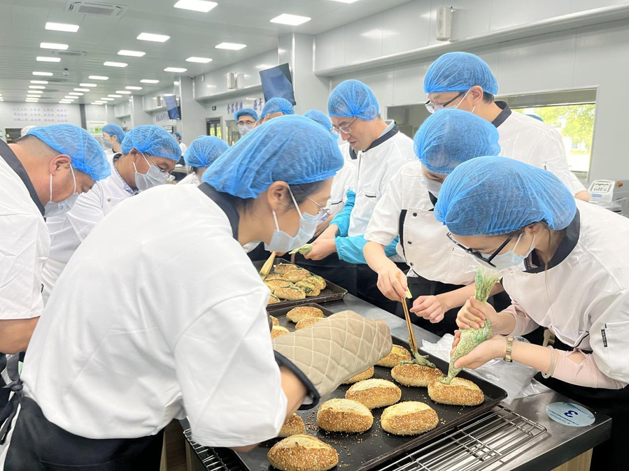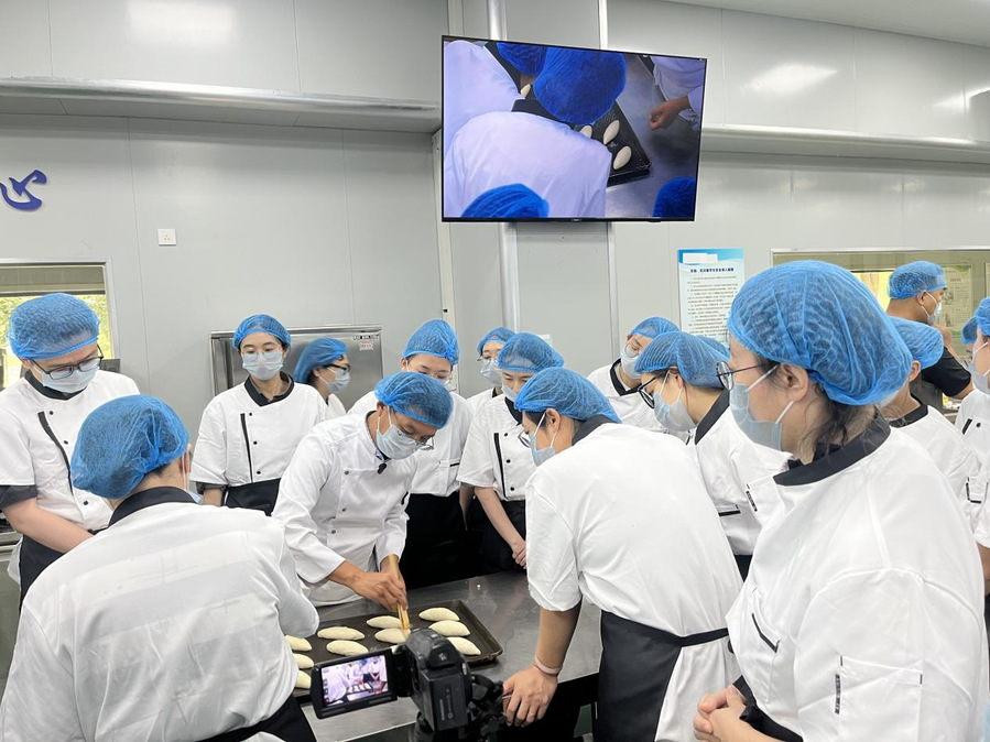 24日下午,在BBV电子·(中国)网站烘焙车间,食品学院李红涛教授为学员们进行烘烤食品类课程建设经验分享,介绍了BBV电子·(中国)网站国家级精品课程团队建设和取得的成果,并指导学员们亲手完成蒜香芝士软欧面包的制作过程。学员们积极开展团队协作,亲身参与每一道制作工序,沉浸式体验高质量课堂实践教学。