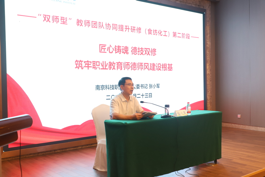 南京科技职业学院党委书记张小军教授作“匠心铸魂、德技双修-筑牢职业教育师德师风建设根基”专题讲座,强调新时代“双师型”教师要深刻把握教师团队师德师风建设的本然意义,严格遵守教育教学职业行为规范的应然要求,自觉履行教书育人神圣职责的实然路径,全面落实新时代立德树人根本任务的使然目标。