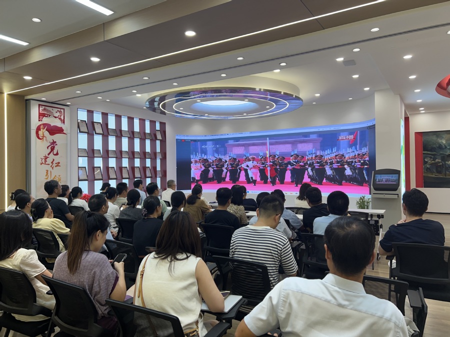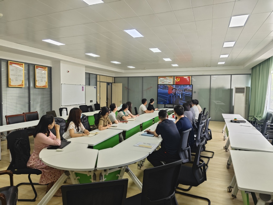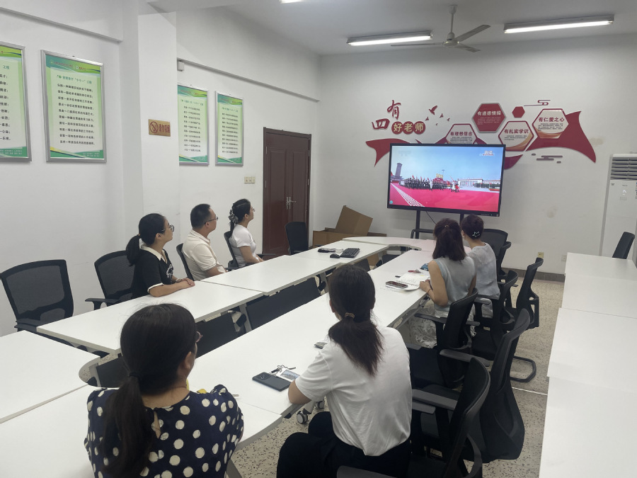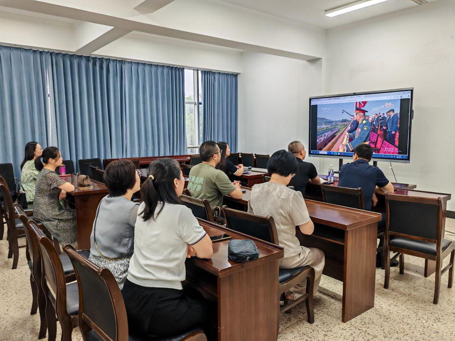 学校党委班子成员、机关职能部门党员干部分别在第三、第四会议室集中观看,二级院部教师在各自会议室集中观看。部分师生进行了自行观看。师生们怀着激动的心情,共同庆祝这一伟大的历史时刻,认真学习领会习近平总书记的重要讲话精神。大家纷纷表示要将爱国情怀转化为立足岗位、砥砺前行的实际行动,为推进中国式现代化和实现中华民族伟大复兴贡献自己的智慧和力量。