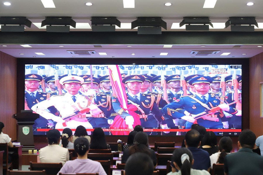 9月3日上午9时,纪念中国人民抗日战争暨世界反法西斯战争胜利80周年大会在北京天安门广场隆重举行。中共中央总书记、国家主席、中央军委主席习近平发表重要讲话并检阅部队,全校师生积极收看大会实况。