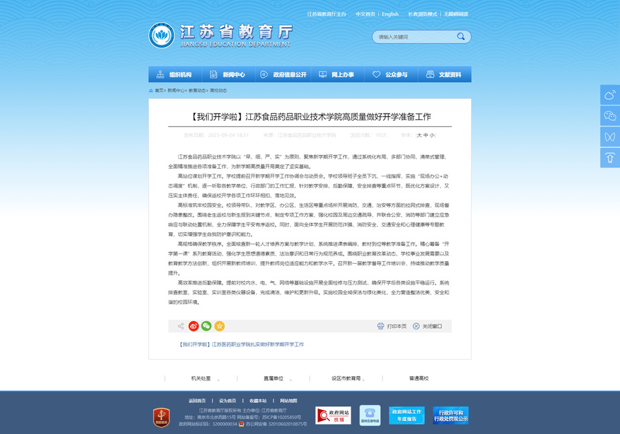 高效率推进后勤保障。提前对校内水、电、气、网络等基础设施开展全面检修与压力测试,确保开学后各类设施平稳运行。系统排查教室、实验室、实训室各类仪器设备,完成清洁、维护和更新升级。实施校园全域保洁与绿化美化,全力营造整洁优美、安全和谐的校园环境。
