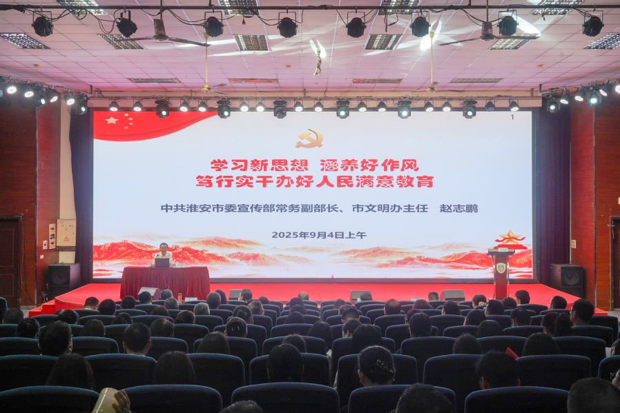 淮安市委宣传部常务副部长、淮安市文明办主任赵志鹏作题为《学习新思想 涵养好作风 笃行实干办好人民满意教育》报告