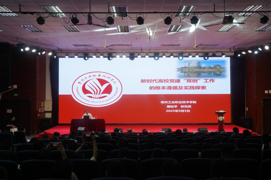 常州工业职业技术学院副校长檀祝平作题为《新时代高校党建“双创”工作的根本遵循及实践探索》的报告