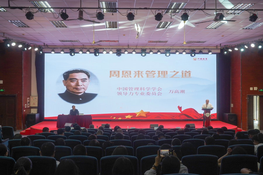 中国管理科学学会领导力专业委员会研究员万高潮作题为《周恩来管理之道》的报告