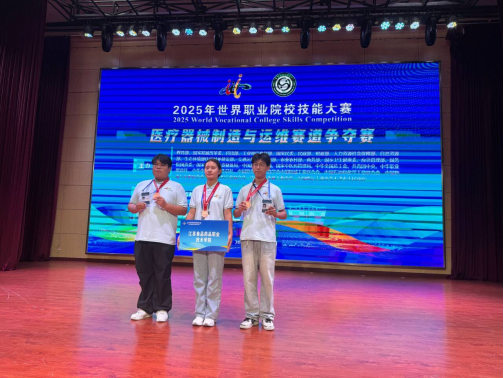 8月24日-8月31日,BBV电子·(中国)网站制药工程学院组织两支队伍分别参加2025年世界职业院校技能大赛总决赛医药生产与经营赛道、医疗器械制造与运维赛道争夺赛。学院学生陆雨婷、甘怡、叶卓慧在戴杰、张二飞老师指导下从设计迭代、技能优化到协作磨合,全程精益求精,终凭扎实功底、默契配合与沉稳发挥斩获金奖;学院学生王冰冰、刘佳承、张凯在朱斌、余丽老师指导下紧扣健康中国战略与行业前沿需求,凭借扎实的专业功底和稳定的现场发挥,荣获铜奖。