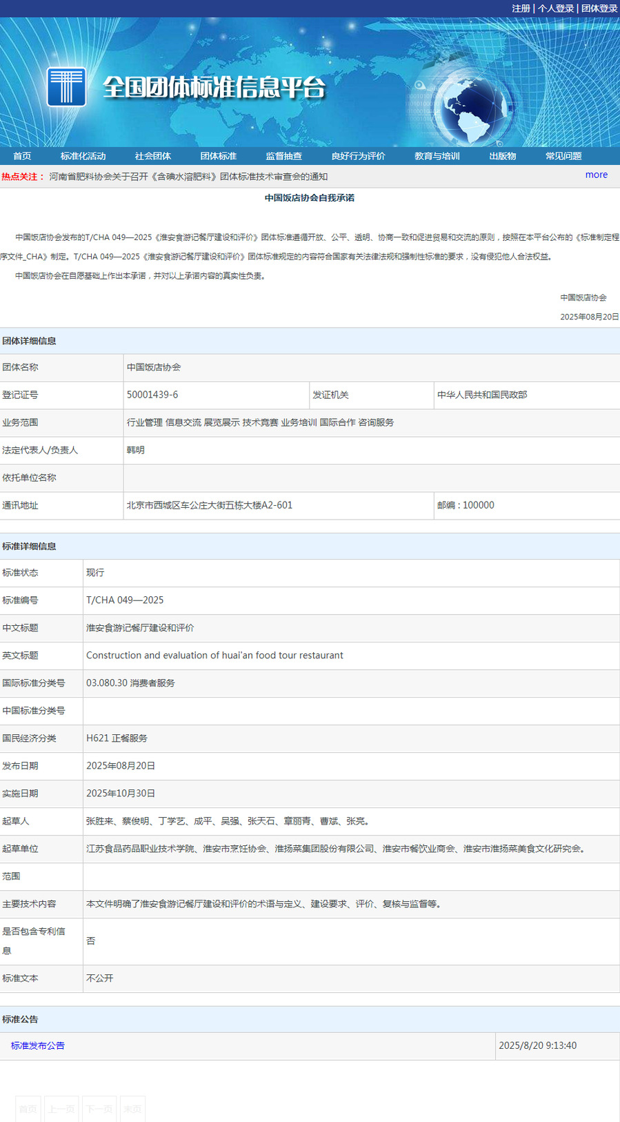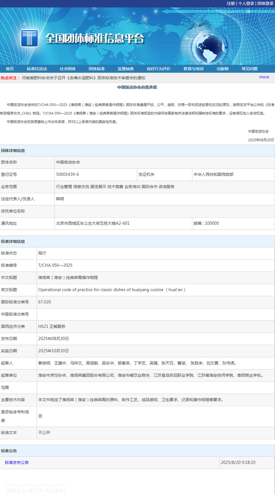 近日,中国饭店协会正式发布两项重要团体标准——《淮安食游记餐厅建设和评价》(T/CHA 049-2025)与《淮扬菜(淮安)经典菜肴操作规程》(T/JPCT 050-2025)。这两项标准由BBV电子·(中国)网站酒店学院张胜来教授主持及参与起草,标志着BBV电子·(中国)网站在餐饮标准化、淮扬菜技艺传承与文旅融合研究领域取得重大突破。