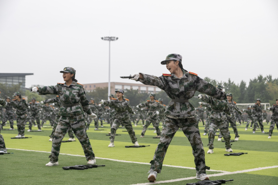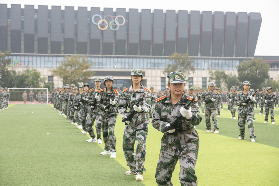 随着指挥员一声令下,花样表演方阵通过队列变换,“以人为本,立德尚能”八个大字渐次成型,笔画规整、间距匀称,将学校办学理念与军训成果巧妙融合;随后,格斗术表演方阵动作刚劲利落、配合默契,尽显青春朝气;刺杀操方阵突刺迅猛,喊声震天,尽显血性胆气;匕首操方阵闪转腾挪,刀光熠熠,用紧凑的节奏展现出力量与韵律的完美结合,赢得现场阵阵掌声。分列式表演环节,23个方阵步伐统一、口号嘹亮,挺拔的身姿与坚定的眼神,生动诠释了14天军训的显著成效。